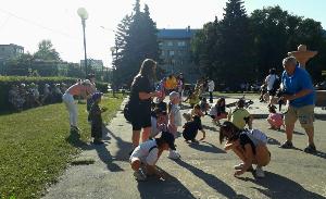 Ну и какой же праздник без интересных конкурсов? Ведущая Ольга Антипова провела интерактивны на знание скороговорок о семье,помогала жителям города угадать,что спрятано в чёрном ящике,а маленькие зрители участвовали в состязании "Кто нарисует больше ромашек на асфальте?"