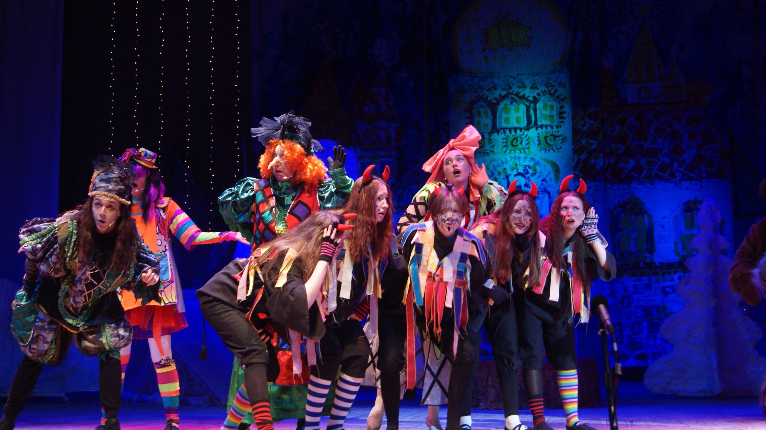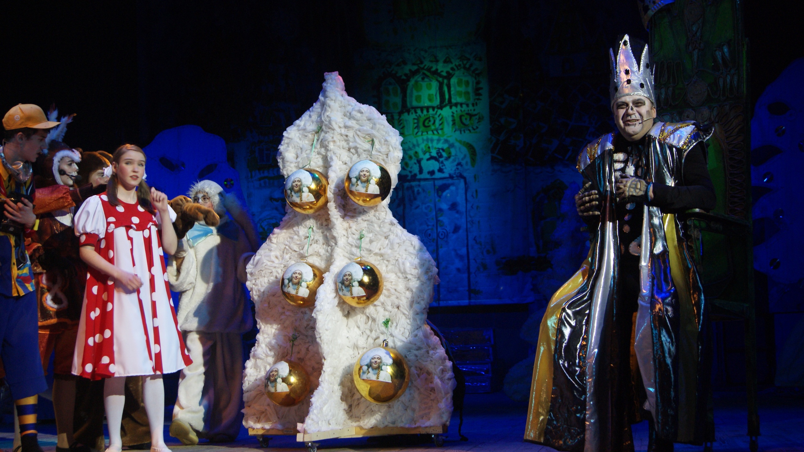 Это было настоящее время чудес! Наши любимые зрители и их родители с удовольствием играли со сказочными героями рядом с красавицей елочкой. В гости к нам пришли друзья из самых разных сказок - и было их... великое множество! Чебурашка загадывал загадки, а проказница Шапокляк под шумок увела с праздника Дракошу... Отыскали Дракошу Дедки Морозки, а вернул детям символ года отважный Буратино. Все было всерьез и по-настоящему: с Дедом Морозом и Снегурочкой пели "В лесу родилась елочка" и танцевали "Барыню", и зажигали огоньки на елочке, и участвовали в карнавале новогодних костюмов... И творилось самое настоящее волшебство. А потом Дедушка Мороз подарил самый главный подарок - сказку "Новогодние приключения"!