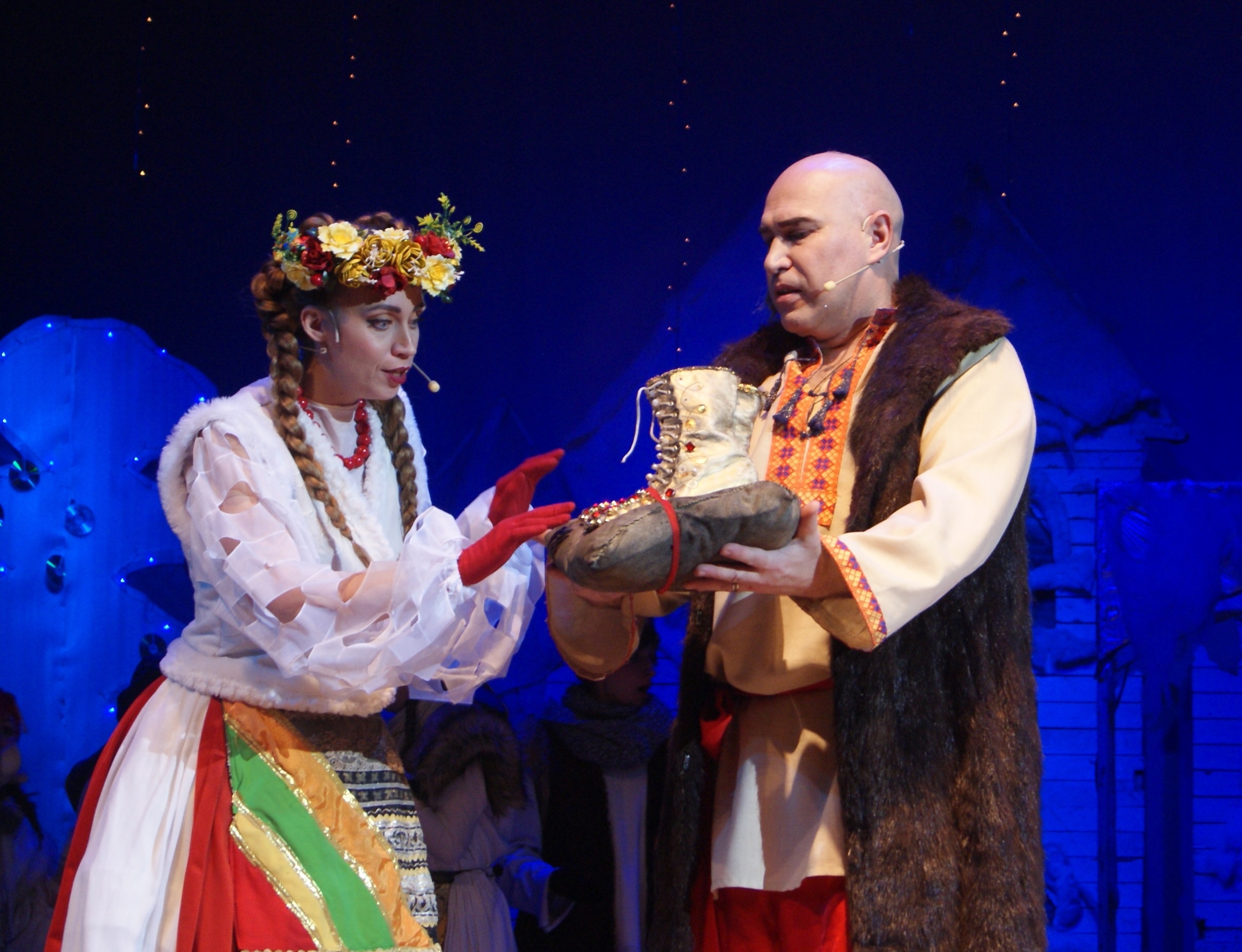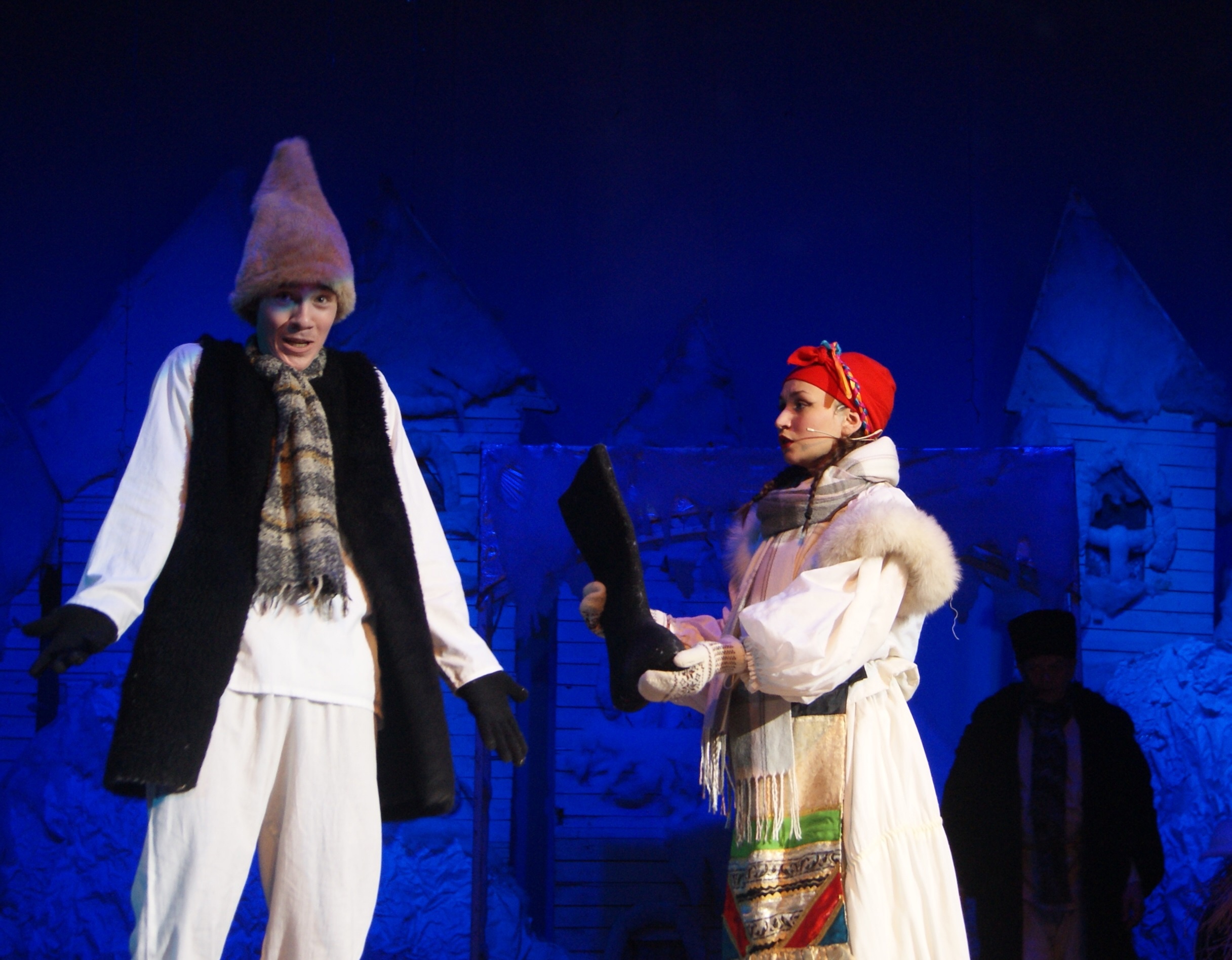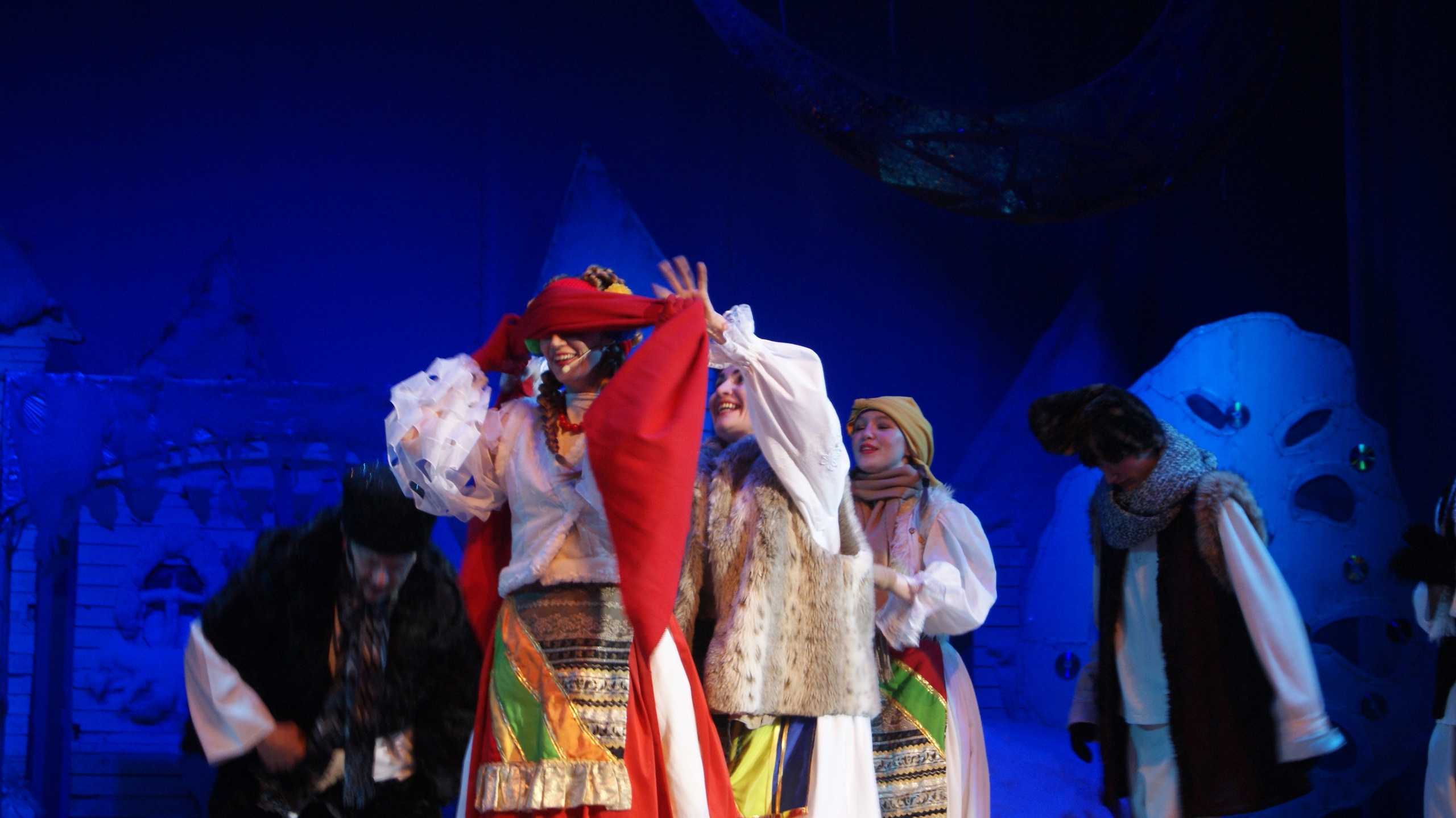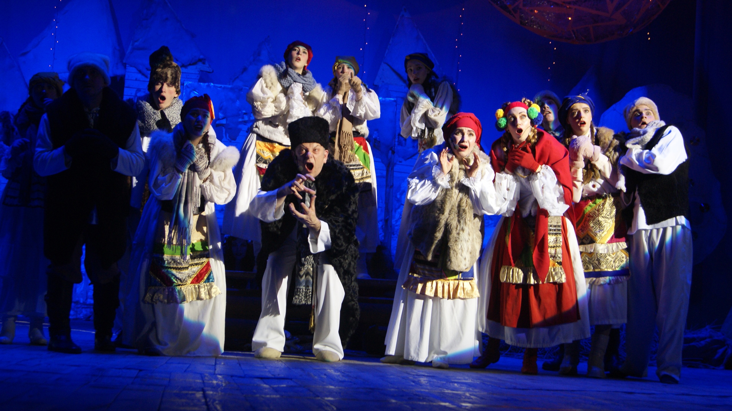 Так в нашем ДК прошел спектакль "Вечера на хуторе близ Диканьки" нашего любимого автора Николая Гоголя! В этом спектакле есть все, что мило русской душе: запах снега и морозца, песни и пляски ... и красивая сказка о любви...Гоголевская повесть получилась очень сказочной и захватывающей своими колядками, фантастическими галушками, реалистичными декорациями, музыкой и светом. Песни, пляски, встреча с ведьмами, угощение у самой Солохи, путешествие в Петербург верхом на Черте за царицыными черевичками для любимой - всё это запомнилось ребятам надолго! Зрители наслаждались счастливой сказкой о любви, поставленной режиссёром Татьяной Тимониной по мотивам повести "Ночь перед Рождеством", где царит талантливое выступление и неповторимое мастерство.